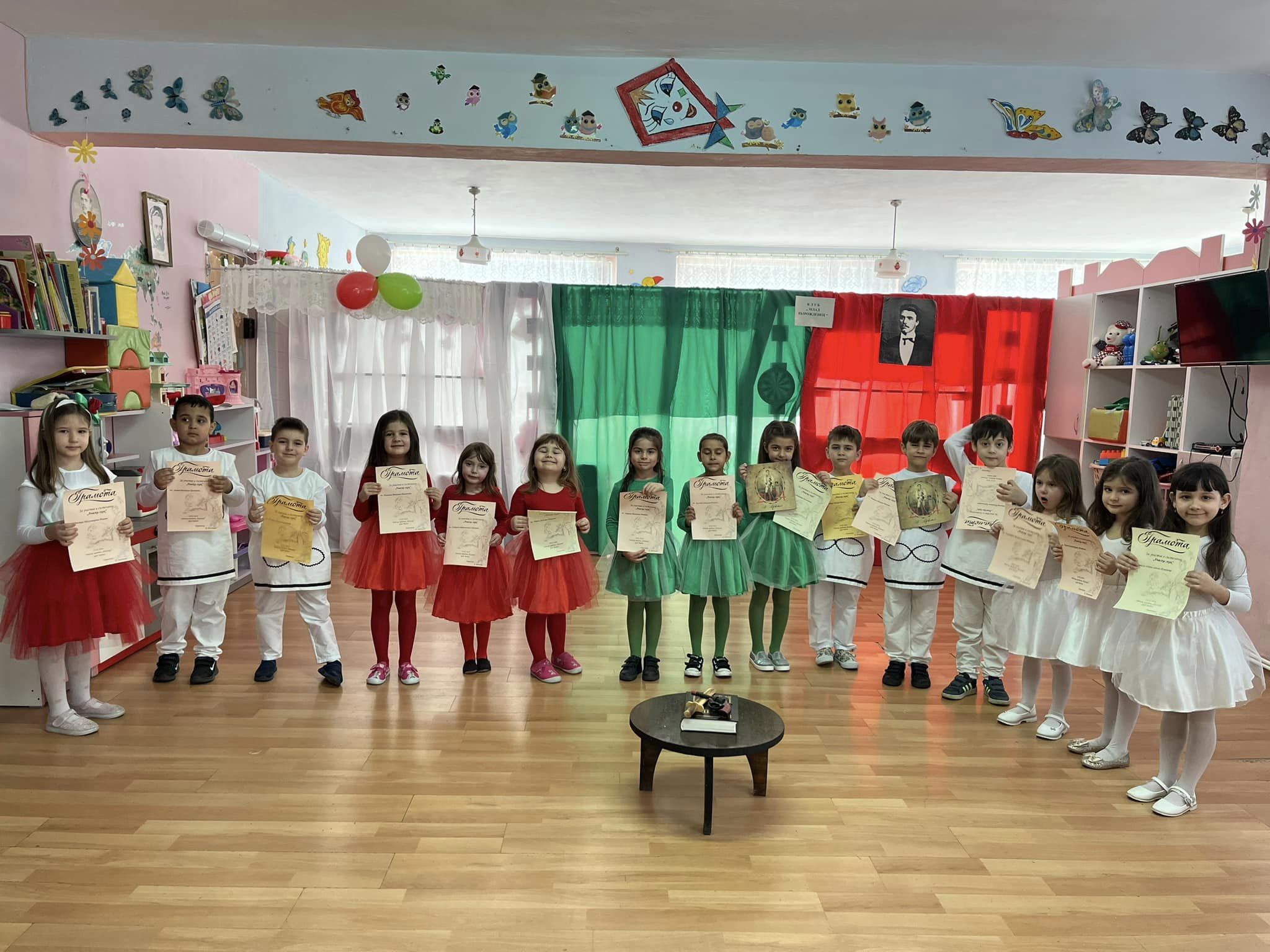 Децата от III група „Усмивка“ и IV група „Маргаритка“ почетоха 151-та годишнина от гибелта на Васил Левски. Стиховете и песните в този ден са израз на дълбока признателност пред паметта и делото на Апостола на свободата!