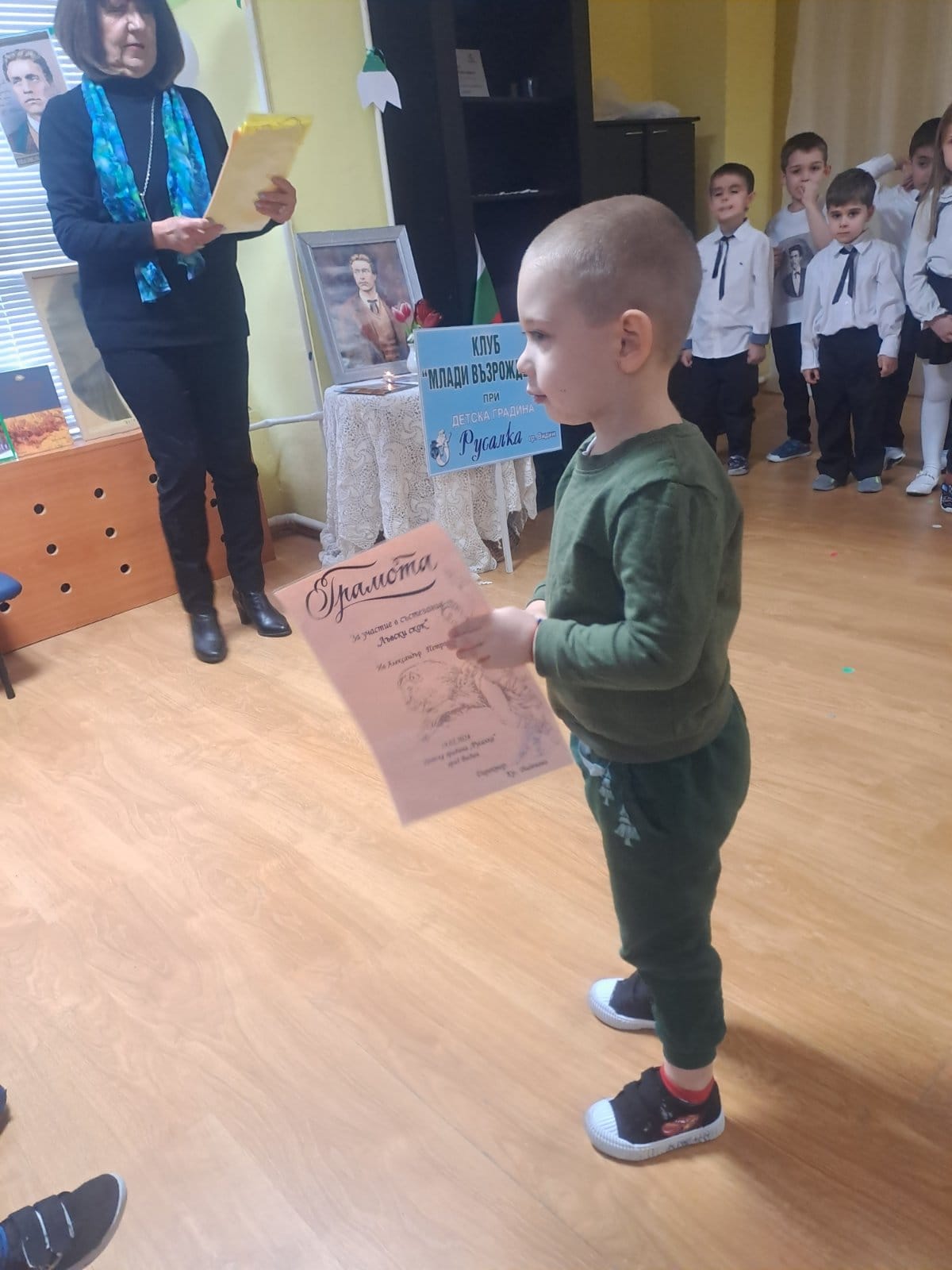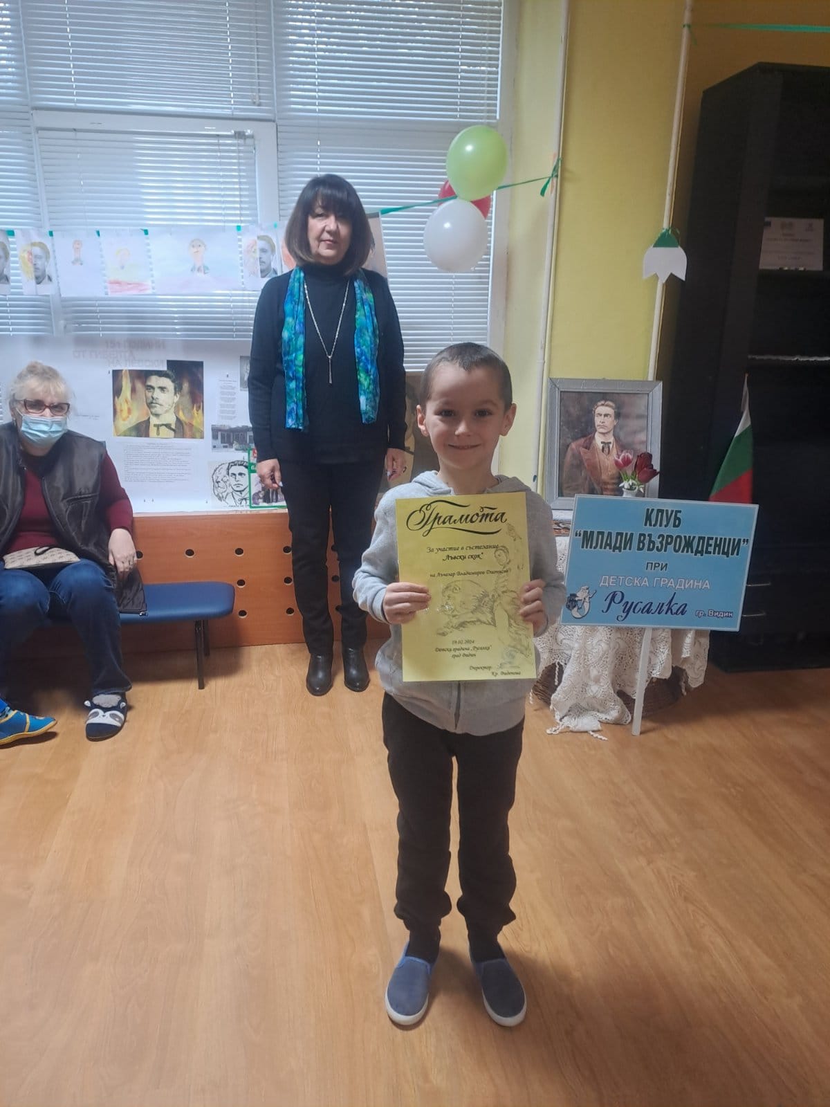 Грамоти от г-жа Виденова – директор на ДГ „Русалка“ получиха отличилите се деца при провеждане на състезанието „Лъвски скок“.