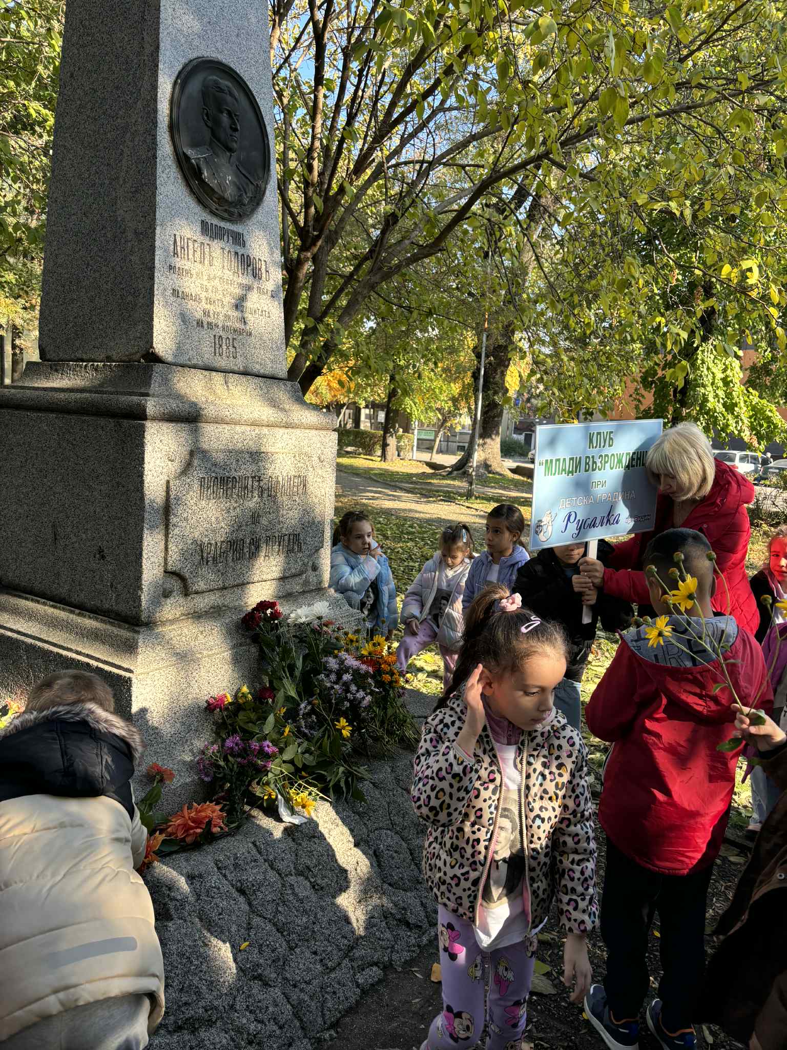 По повод Денят на Видин – Димитровден, децата от подготвителните групи на ДГ „Русалка“ и филиал „Здравец“, освен красиви рисунки изобразяващи известната крепост „Баба Вида“, поднесоха цветя на паметника на подпоручик Ангел Тодоров, загинал в защита на родния край. От краткия разказ за героя децата научиха, че любовта към родния град се изразява и чрез паметта на неговите достойни синове. С радост и вълнение прекрачиха прага на вторият по големина храм в България намиращ се именно във Видин – „Свети Великомъченик Димитър Солунски“, където запалиха свещ за доброто на Видин.